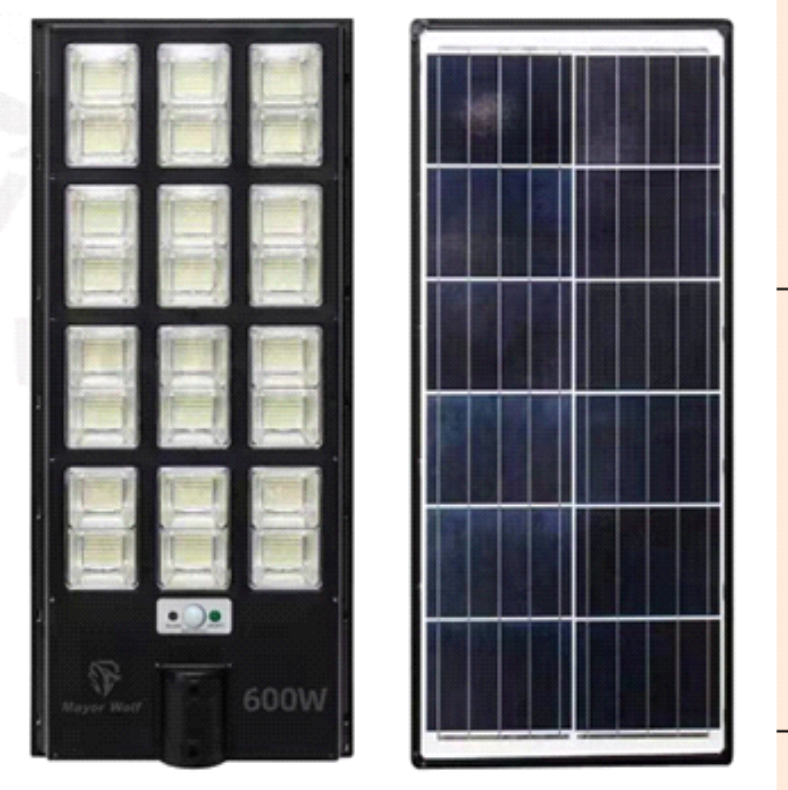 Thông số đèn đường năng lượng mặt trời liền thể 600w